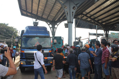 Trạm BOT Biên Hòa rối loạn, Quốc lộ 1 hướng Bắc - Nam tê liệt do tài xế dùng tiền lẻ mua vé vẫn không chịu rời trạm - Ảnh: Xuân Hoàng